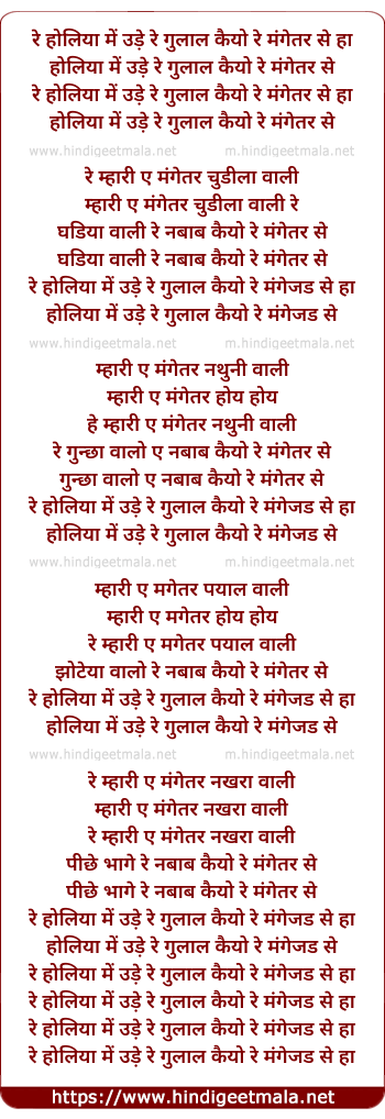 Lyrics of Re Holiya Mai Uda Re Gulaal - रे होलिया में उड़े रे गुलाल कैयो रे मंगेतर से हा