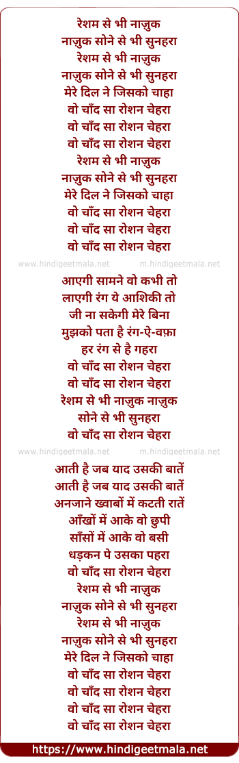 Lyrics of Reham Se Bhi Najuk - रेशम से भी नाज़ुक