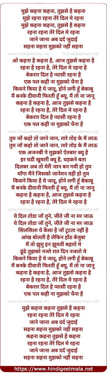 mujhe kehna kehna tujhase hai kehna