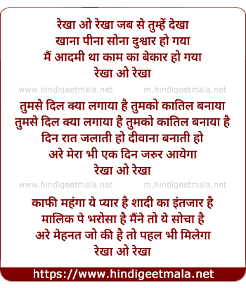 Lyrics of Rekha O Rekha, Jab Se Tumhe Dekha - रेखा ओ रेखा जब से तुम्हें देखा