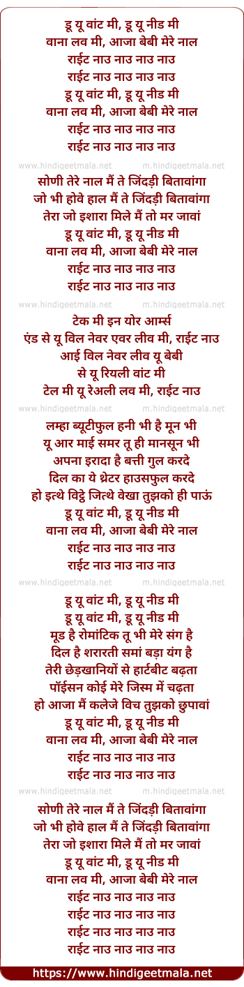 Lyrics of Right Now Now - Remix - राईट नाउ नाउ