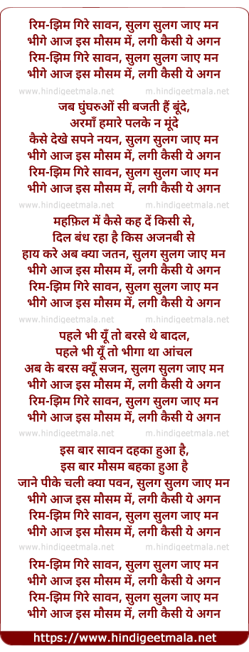 Lyrics of Rimjhim Gire Sawan, Sulag Sulag Jaye Man - रिम-झिम गिरे सावन, सुलग सुलग जाए मन