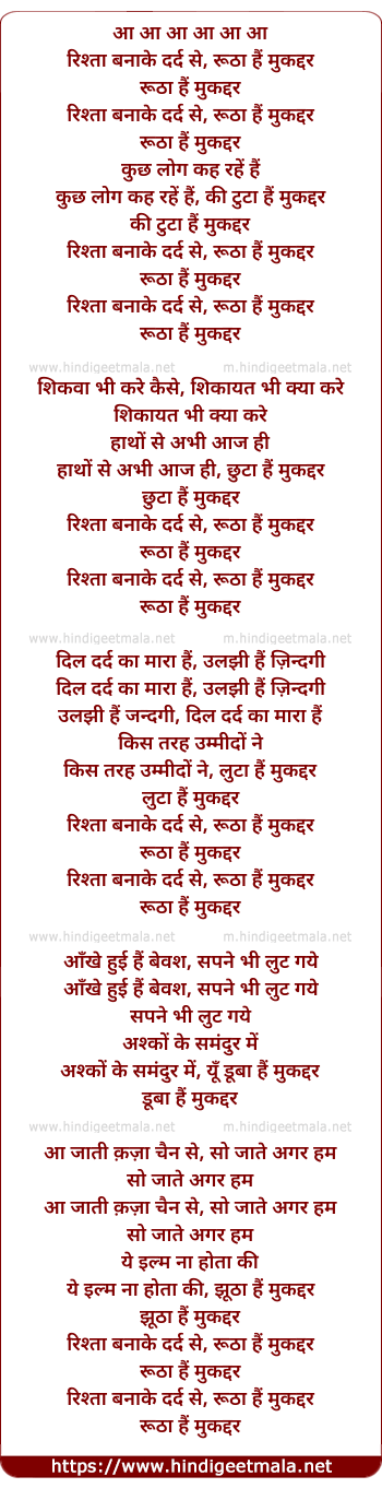 Poetic Translation - Lyrics of Rishta Banaake Dard Se - आ आ आ आ आ आ