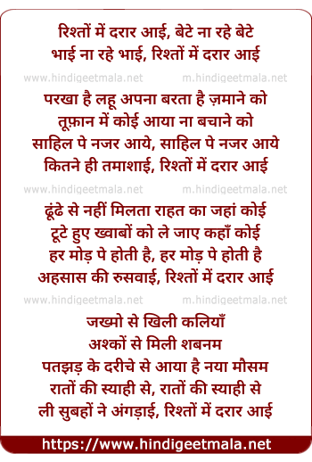 Lyrics of Rishto Me Darar - रिश्तों में दरार आई, बेटे ना रहे बेटे