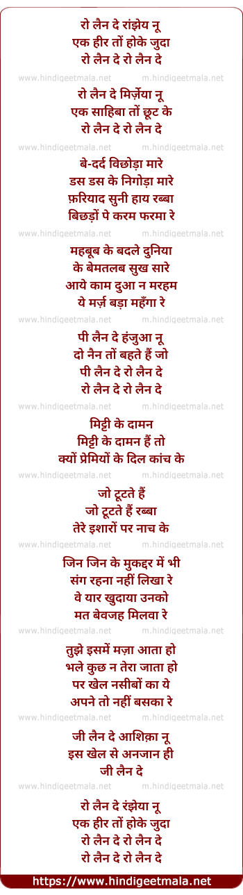 Lyrics of Ro Lain De - रो लें दे