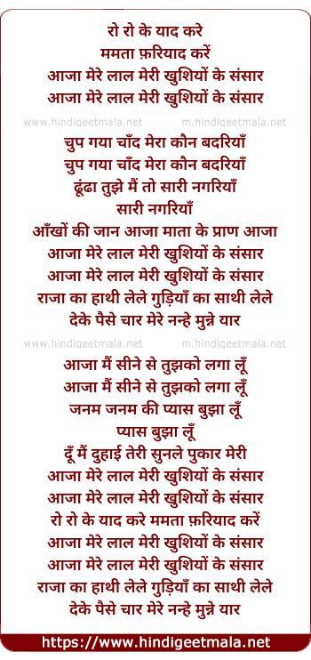 Poetic Translation - Lyrics of Ro Ro Ke Yaad Kare - रो रो के याद करे