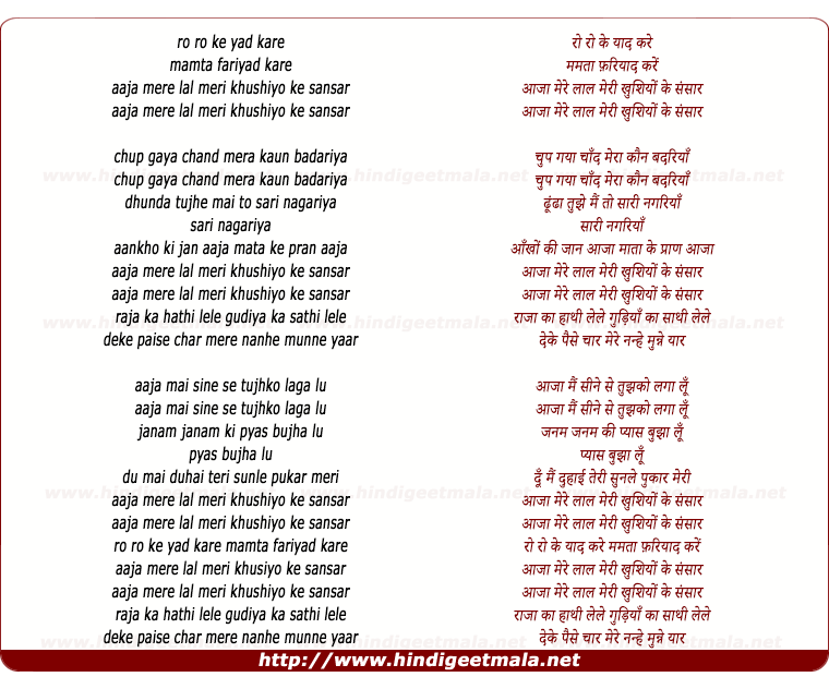 Comments for lyrics of song "Ro Ro Ke Yaad Kare"