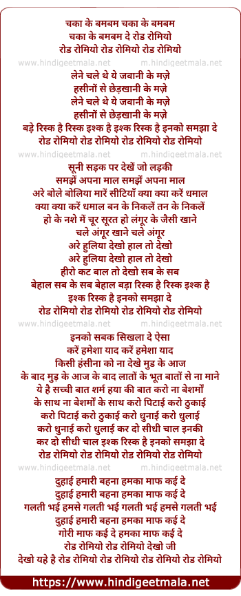 Lyrics of Road Romiyo He Road Romiyo - रोड रोमियो हे रोड रोमियो