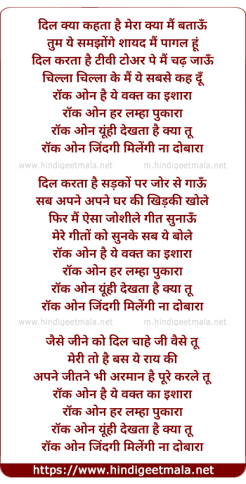 Poetic Translation - Lyrics of Rock On Revisited - रॉक ऑन रीविसिटेड
