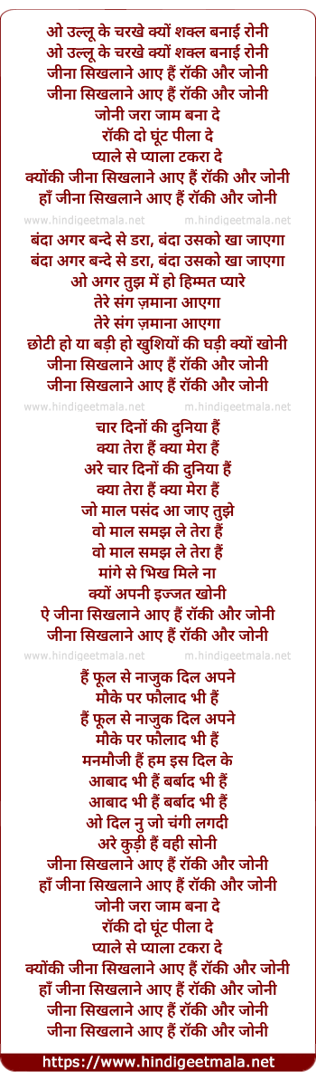Lyrics of Rocky Aur Johny - रॉकी और जोनी