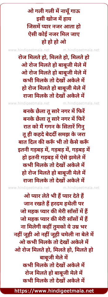 Lyrics of Roj Milte Ho Babuji Mele Me - रोज मिलते हो बाबूजी मेले में