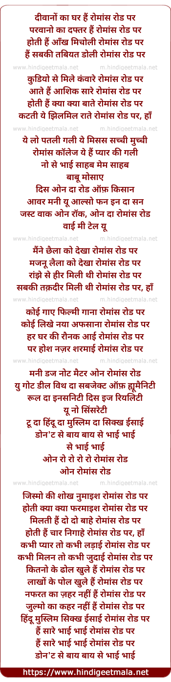 Lyrics of Deewano Ka Ghar Hai Romance Road Par - दीवानों का घर हैं रोमांस रोड पर