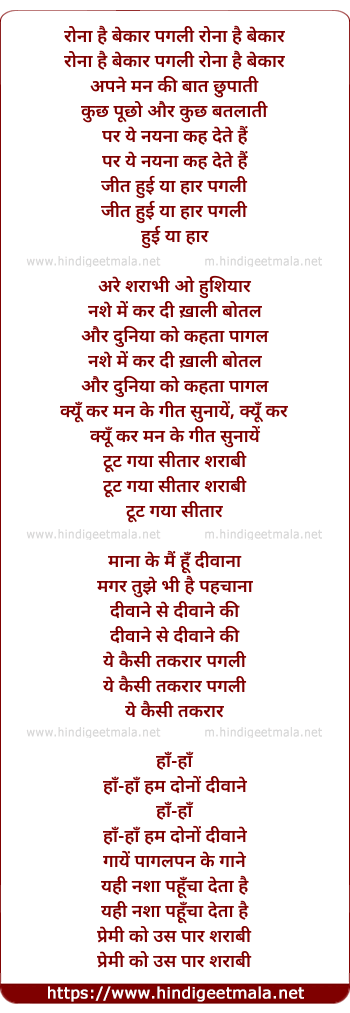 Lyrics of Ronaa Hai Bekaar Pagali - रोना है बेकार पगली रोना है बेकार