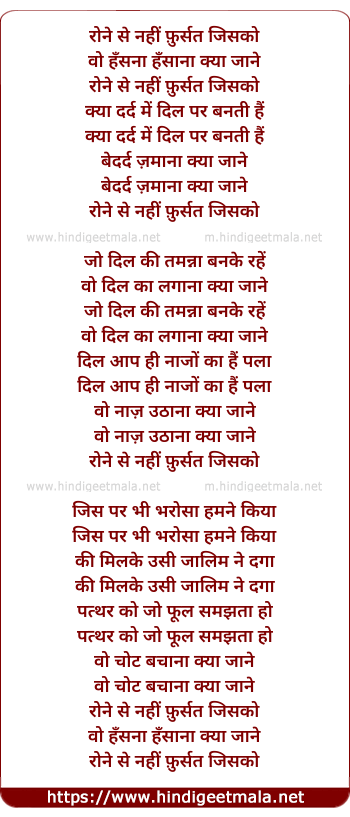 Lyrics of Rone Se Nahin Fursat Jisko - रोने से नहीं फ़ुर्सत जिसको