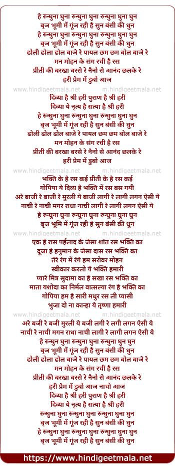 Lyrics of Roon Ghoona Ghuna Roon - रुन् घुना घुना रुन्