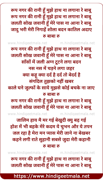 rup nagar ki rani hu mujhe hath na lagana re babu