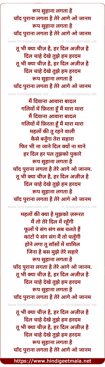 Lyrics of Roop Suhana Lagta Hai - रूप सुहाना लगता है