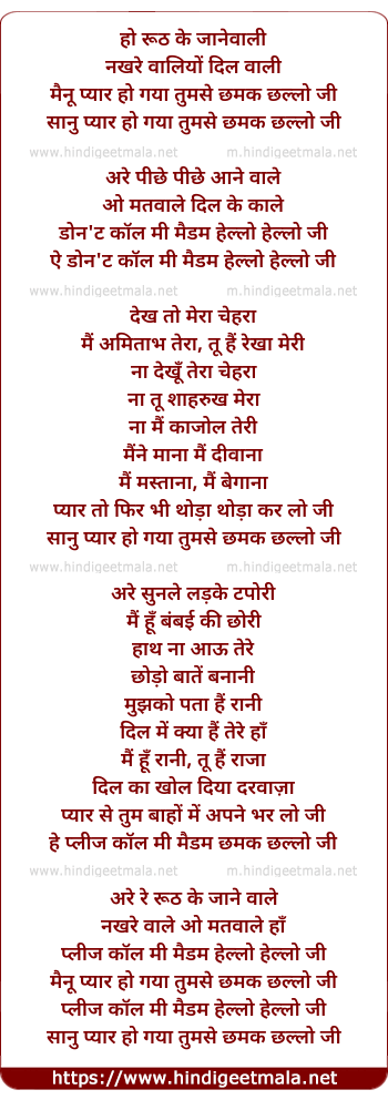 hey please call me madam chhamak chhallo ji