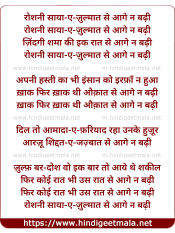 Lyrics of Roshani Saayaa E Zulmaat Se Aage Na Badhi - रोशनी साया-ए-ज़ुल्मात से आगे न बढ़ी