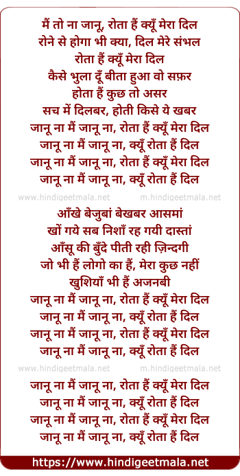 Lyrics of Rota Hai Kyun Mera Dil - मैं तो ना जानू, रोता हैं क्यूँ मेरा दिल