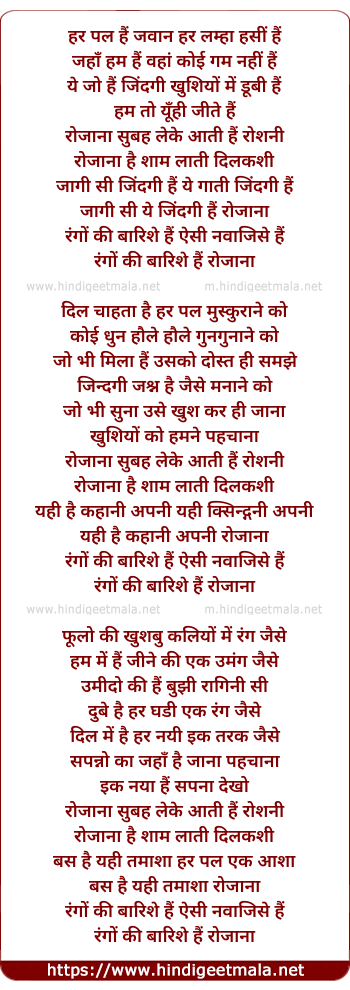Lyrics of Rozaana (Remix) - हर पल हैं जवान हर लम्हा हसीं हैं