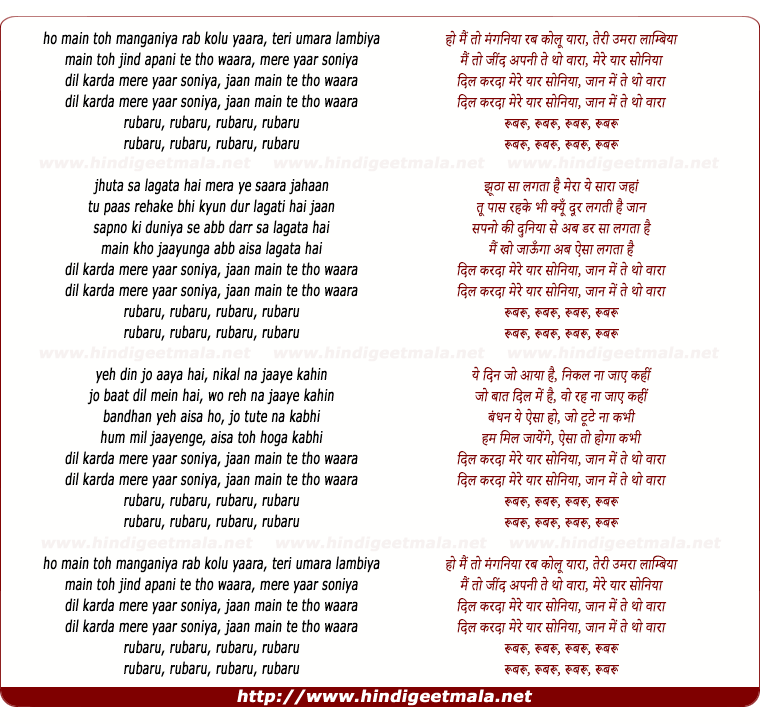 Lyrics of Rubaru Bhangra - रूबरू भंगड़ा