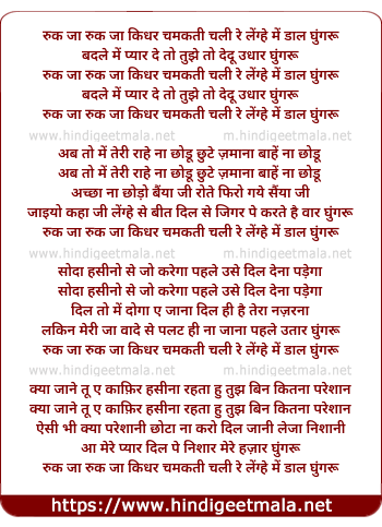ruk ja ruk ja kidhar chamakti chali re lenghe me daal ghungroo