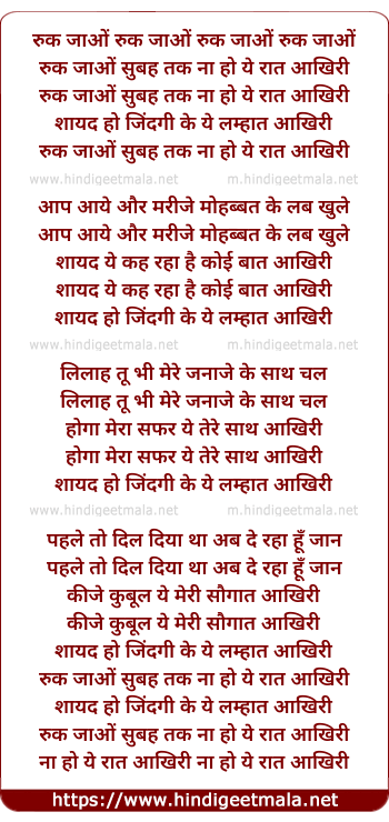 Lyrics of Ruk Jaao Subah Tak - रुक जाओं रुक जाओं रुक जाओं रुक जाओं