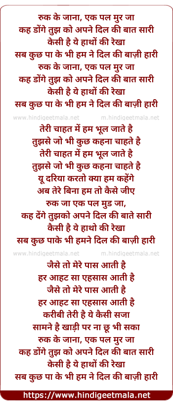 Poetic Translation - Lyrics of Ruk Ke Jana (Everytime I See You Remix) - रुक के जाना, एक पल मुर जा