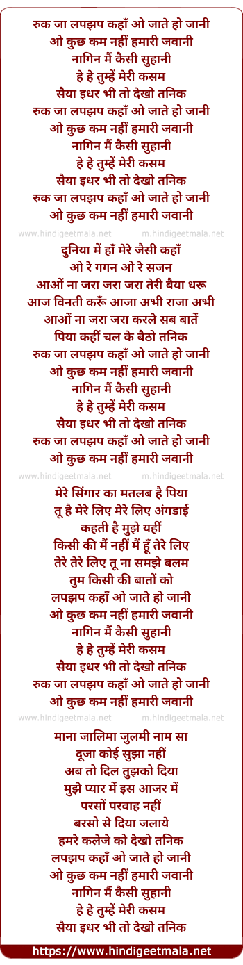 Lyrics of Rukh Jaa Lapjhap Kaha - रुक जा लपझप कहाँ