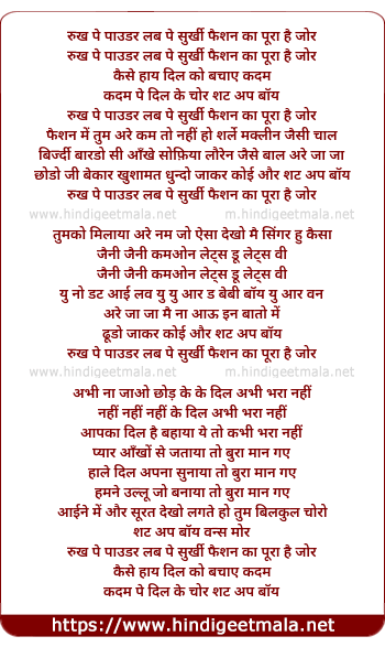 Lyrics of Rukh Pe Paudar Lab Pe Surkhi Faishon Ka Pura Hai Jaur - रुख पे पाउडर लब पे सुर्खी फैशन का पूरा है जोर
