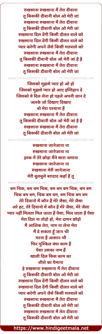 Lyrics of Rukhsana Rukhsana Mai Tera Deewana - रुखसाना रुखसाना मैं तेरा दीवाना