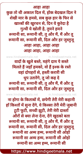 Lyrics of Rumani Saa, Tu Aur Main - रूमानी सा, तू और मैं
