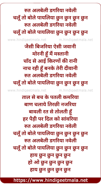 Lyrics of Rut Albeli Dagariya Naveli - रुत अलबेली डगरिया नवेली