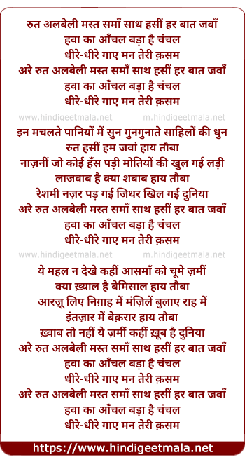Lyrics of Rut Albeli Mast Sama - रुत अलबेली मस्त समाँ