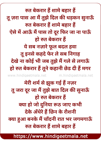 Lyrics of Rut Beqarar Hai Shame Bhar Hai - रुत बेकरार हैं शामे बहार हैं