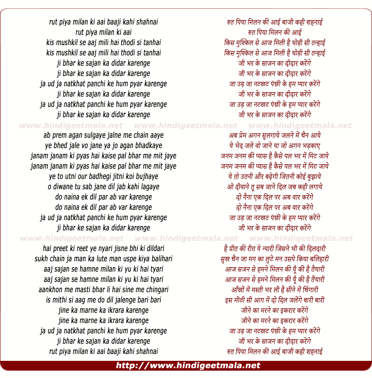 Lyrics of Rut Piya Milan Ki - रुत पिया मिलन की