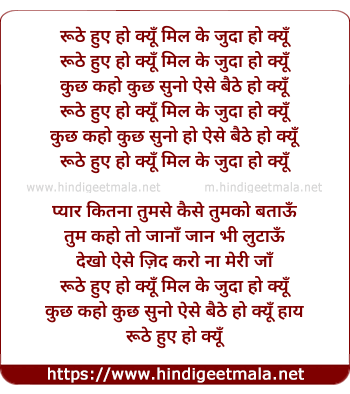Lyrics of Ruthe Hue Ho Kyun, Mil Ke Judaa Ho Kyun - रूठे हुए हो क्यूँ मिल के जुदा हो क्यूँ