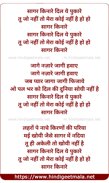 Lyrics of Saagar Kinare Dil Yeh Pukaare - सागर किनारे दिल ये पुकारे