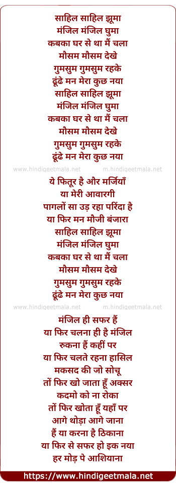 Lyrics of Saahil - साहिल साहिल झूमा