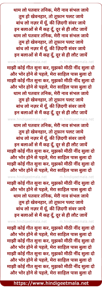 Lyrics of Saahil Tak - थाम लो पतवार तनिक, मेरी नाव संभल जाये