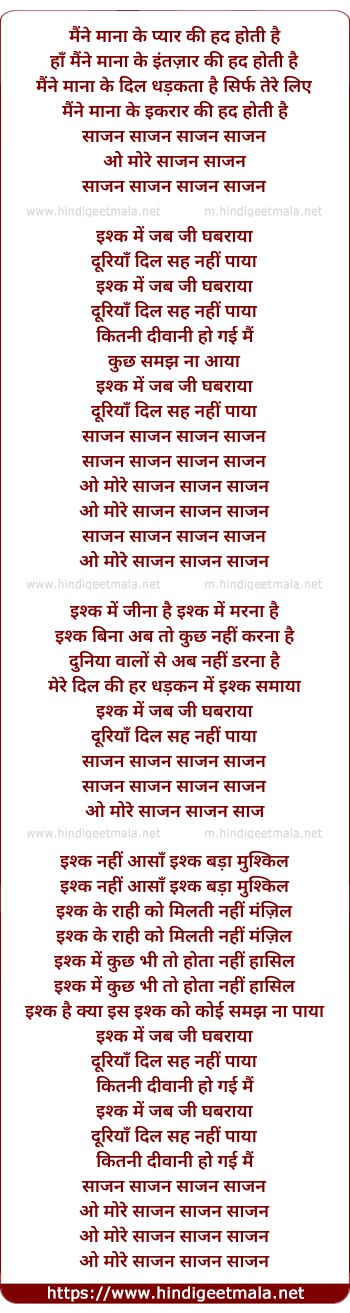 Lyrics of Saajan Saajan