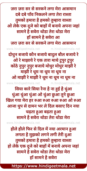 Lyrics of Samne Hai Saveraa Zara Zara Sar Se - सामने है सवेरा ज़रा ज़रा सर से