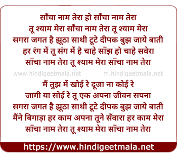Lyrics of Saanchaa Naam Teraa Tu Shyaam Meraa - साँचा नाम तेरा तू श्याम मेरा