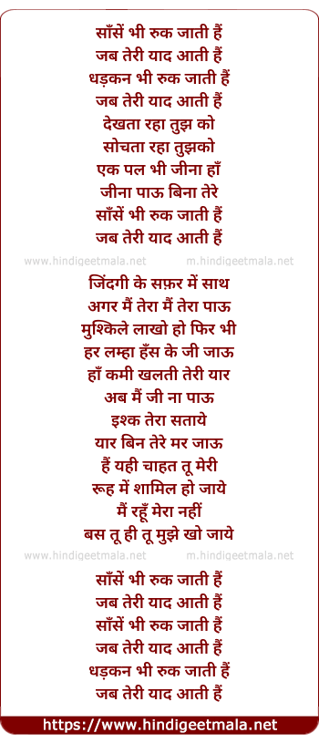 Lyrics of Saansei Bhi Ruk Jati Hai - साँसें भी रुक जाती है