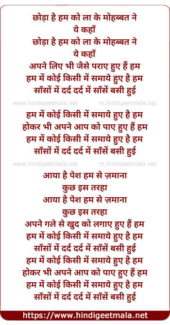 Lyrics of Saanso Men Dard Dard Men Saansen - साँसों में दर्द दर्द में साँसें