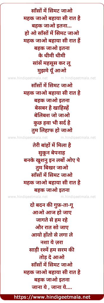 Lyrics of Saanson Mein Simat Jao - साँसों में सिमट जाओ