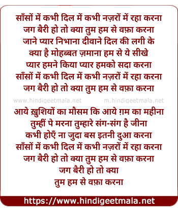 Lyrics of Saanson Me Kabhi Dil Me Kabhi - सांसो में कभी दिल में कभी