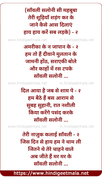Lyrics of Saanvali Saloni Si Mahabubaa - (साँवली सलोनी सी महबूबा