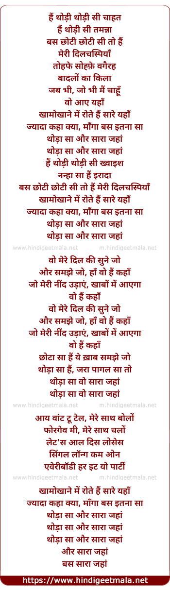 Lyrics of Saara Jahaa - हैं थोड़ी थोड़ी सी चाहत